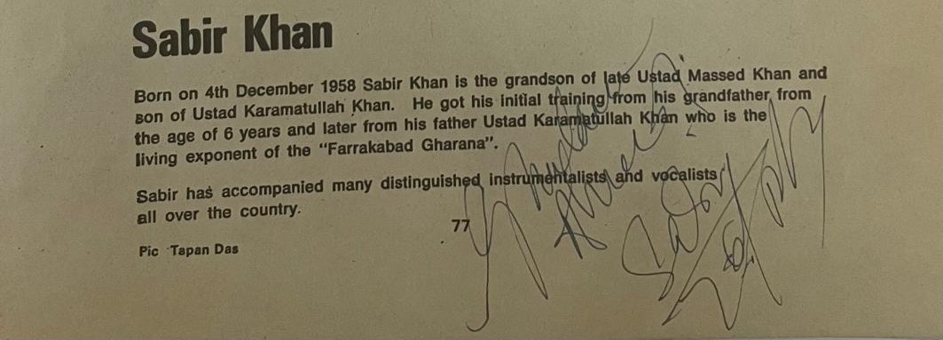 Lineage: 33rd descendant of the Mir Akasa lineage, tracing back to the 11th century. Trained by his grandfather Ustad Masit Khan (a celebrated tabla maestro) and father Ustad Karamatullah Khan, both pillars of the Farrukhabad tradition.