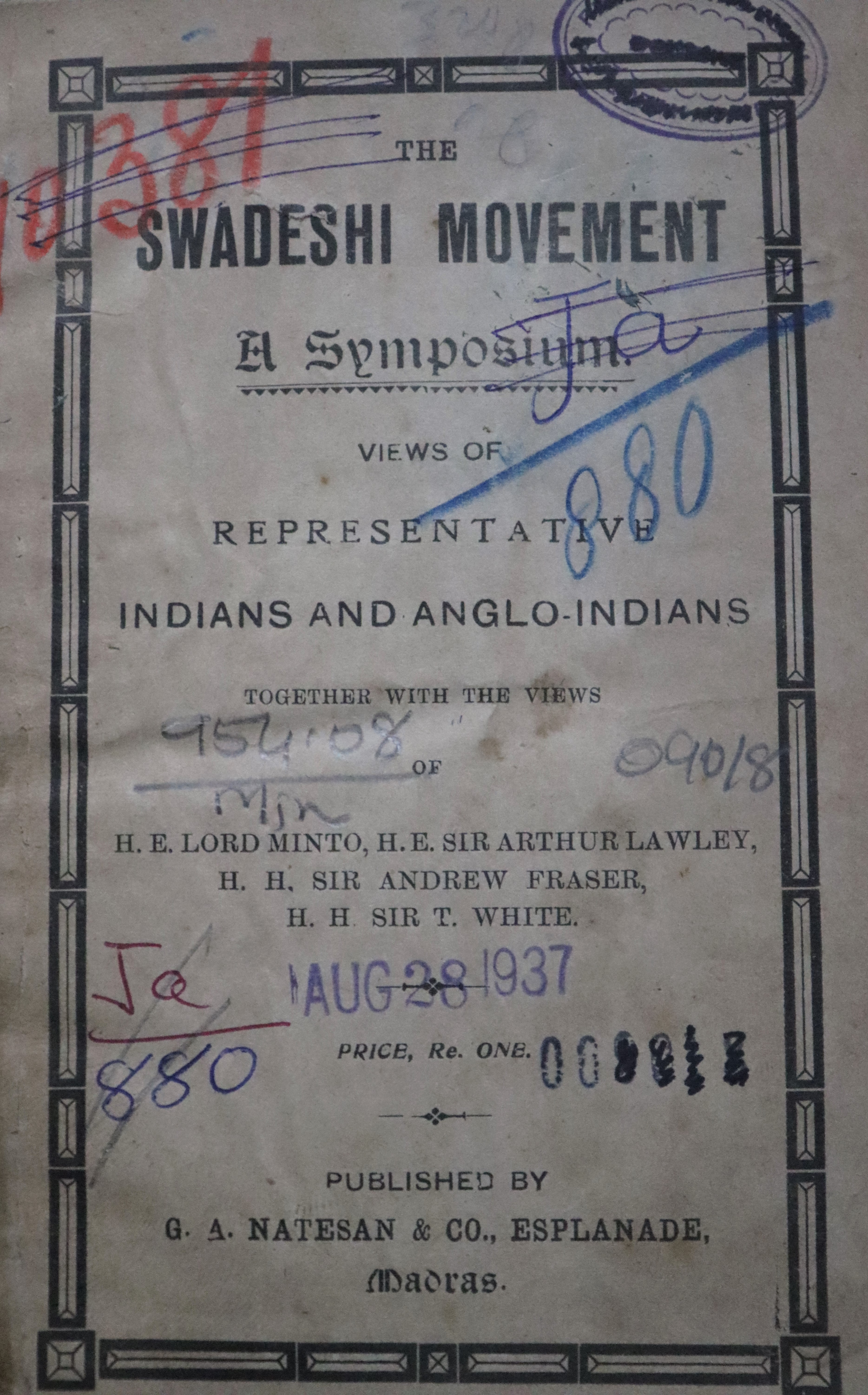 The Swadeshi Movement A Symposium : Views of Representative Indians and Anglo-Indians