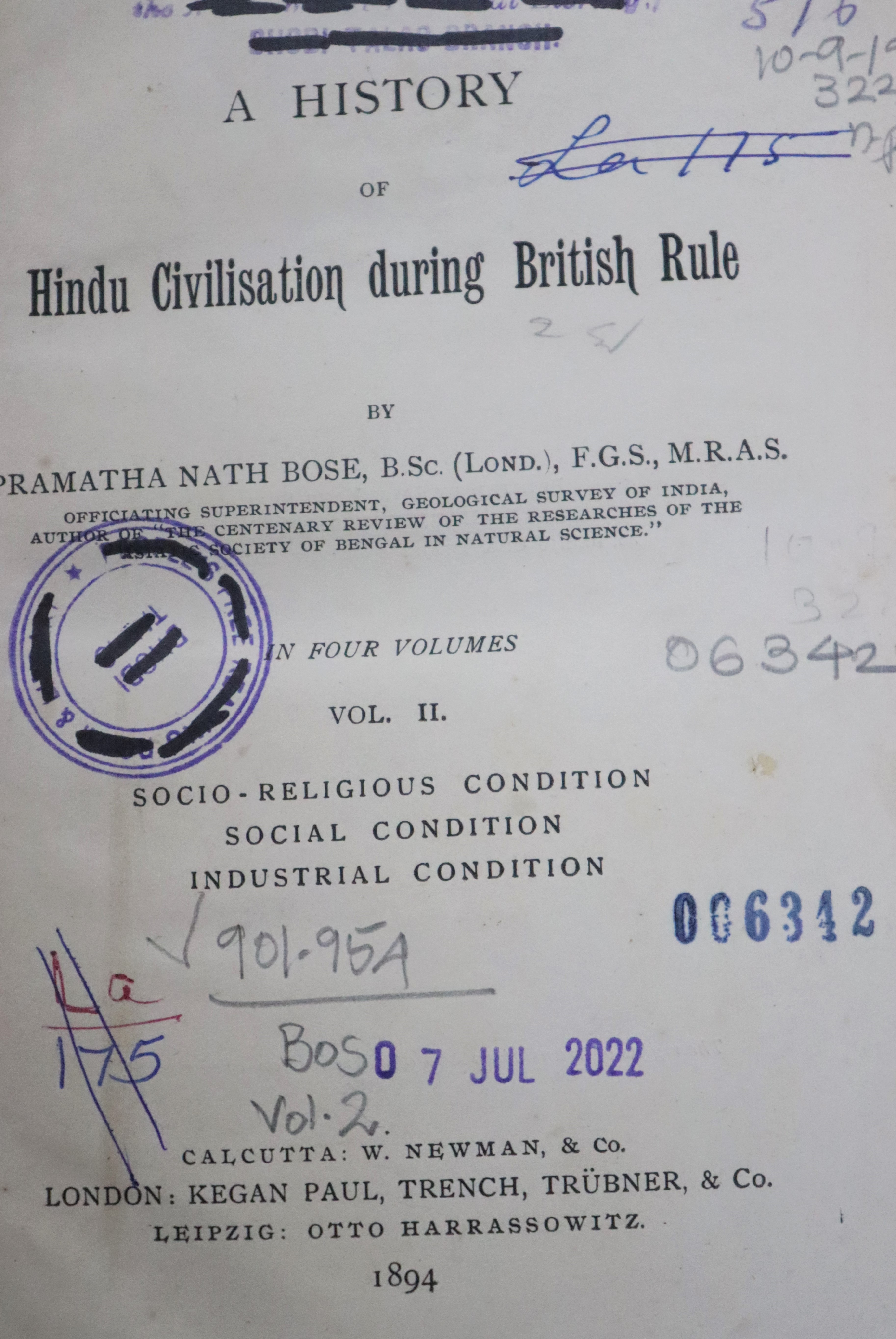 A History of Hindu Civilisation During British Rule Vol II by Pramatha Nath Bose, published in 1894, is a detailed examination of the social, religious, and institutional changes in Hindu society under British colonial rule. Bose, a learned Indian scholar and geologist, approaches the subject with both the rigor of a historian and the lived perspective of a native observer. The book is recognized for its impartiality, depth of research, and clear narrative style, making it a valuable resource for understanding the complexities of Indian society during a period of intense transformation.