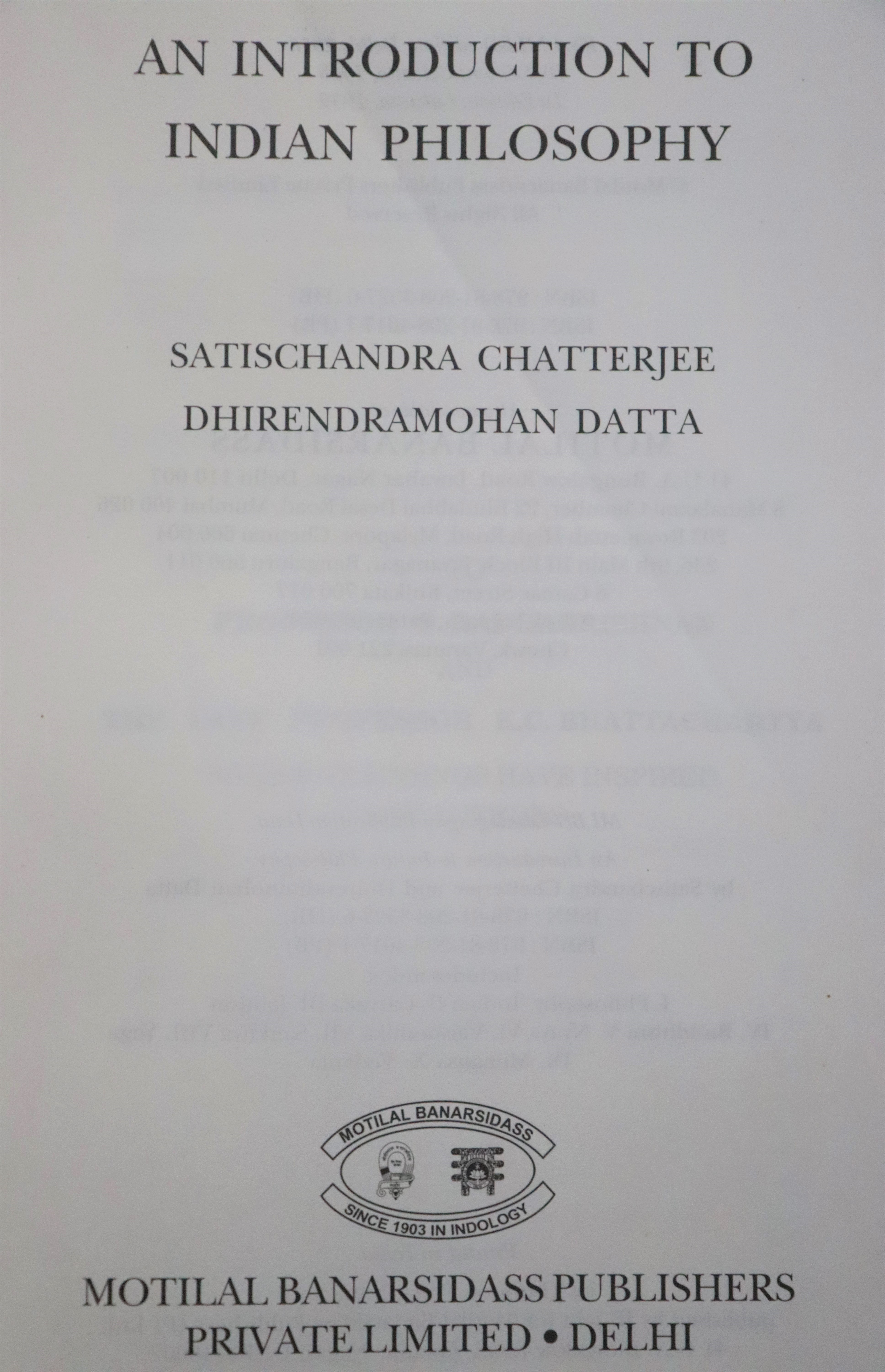 An Introduction to Indian Philosophy by Satischandra Chatterjee and Dhirendra Mohan Datta is a foundational text that systematically introduces readers to the rich and diverse traditions of Indian philosophical thought. First published in the early 20th century and reissued by Motilal Banarsidass in 2016, the book is widely regarded as an authoritative and accessible primer for students, scholars, and general readers interested in Indian philosophy. Its primary aim is to present the essential ideas, methods, and systems of Indian philosophy, focusing on clarity and comprehensiveness rather than exhaustive detail.The book is structured to give both a bird’s-eye view and in-depth analysis. The opening chapter outlines the general principles and basic features of Indian philosophy, followed by individual chapters dedicated to each major school of thought—both orthodox (āstika) and heterodox (nāstika). The authors emphasize the spirit and outlook of Indian philosophy, highlighting its central themes, historical development, and unique contributions to world thought.