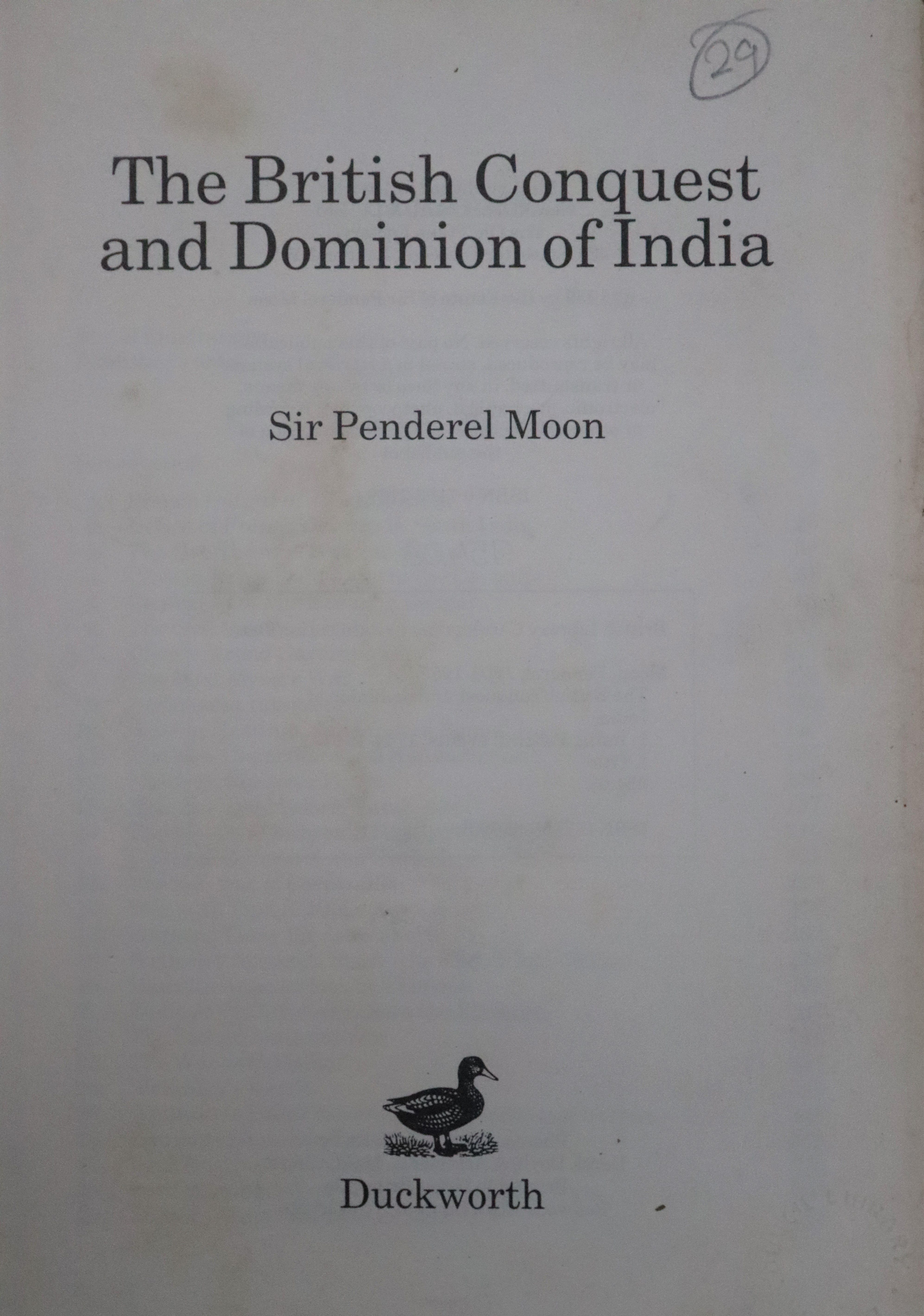 The British Conquest and Dominion of India by Sir Penderel Moon, published by Duckworth in 1989, is a monumental two-volume work spanning over 1,200 pages. It provides a comprehensive history of British involvement in India, from the mid-18th century Battle of Plassey to the independence and partition of India and Pakistan in 1947. Moon, a former Indian Civil Service officer, draws on his extensive experience and scholarship to deliver a detailed account of political, military, and administrative developments that shaped the subcontinent during two centuries of British rule.The book is divided into two major parts:Part One covers the rise of the British East India Company against the backdrop of the declining Mughal Empire, detailing the gradual expansion of British power and the establishment of an administrative system.Part Two examines the period of direct British rule from London (Whitehall) after the 1857 Mutiny, chronicling the growing Indian demand for self-government and the eventual end of British dominion.Moon’s narrative is noted for its clarity, accessibility, and relatively unbiased tone, balancing the British perspective with a recognition of Indian agency and resistance.