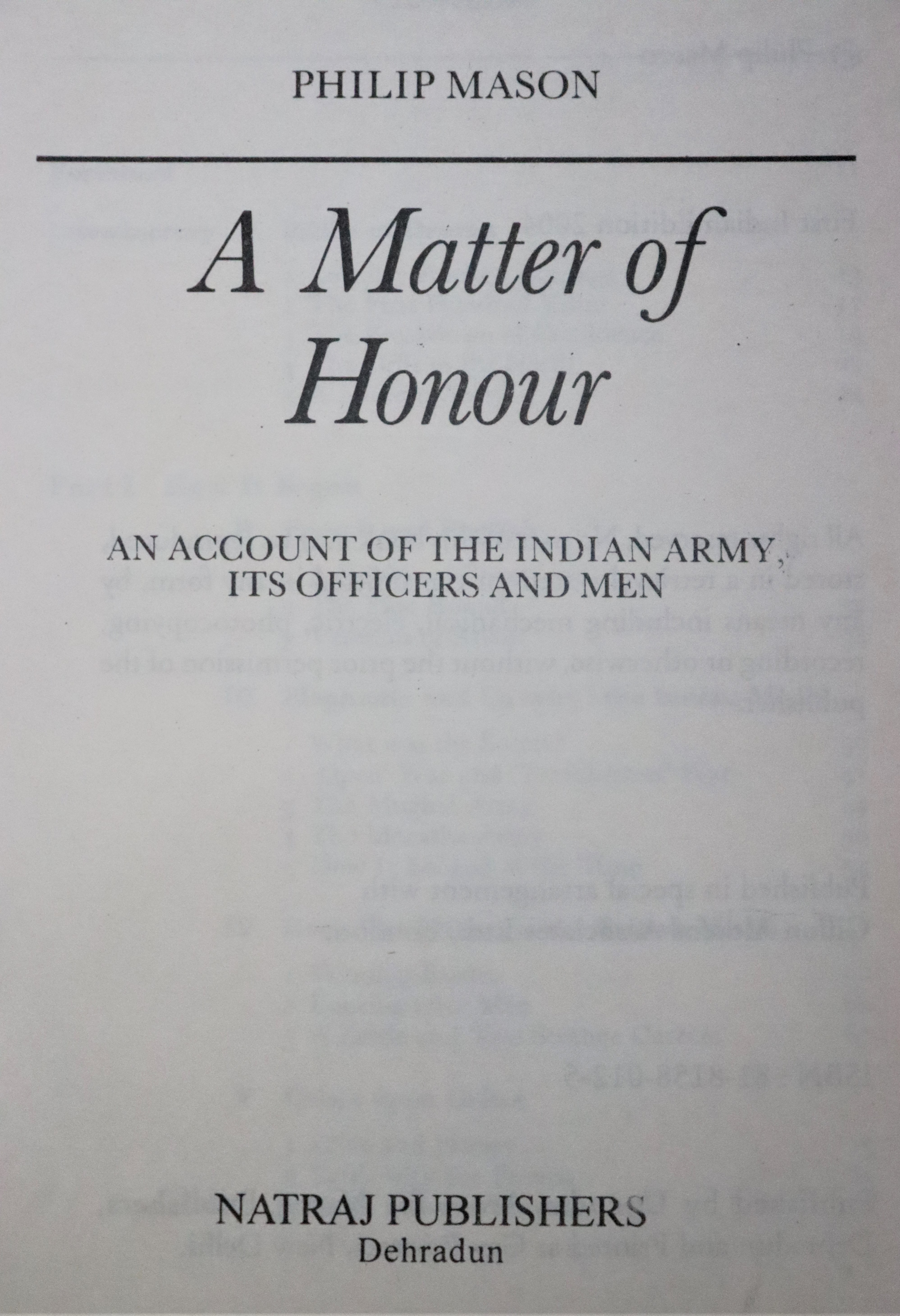 A Matter of Honour by Philip Mason remains a landmark work in the history of the Indian Army and colonial India. Through meticulous research and evocative storytelling, Mason brings to life the men who served in the army, the values they upheld, and the complex world they inhabited. The book’s central thesis—that honour is the foundation of military excellence and cohesion—resonates beyond its historical context, offering timeless insights into human behaviour and the making of institutions.Its enduring relevance lies in its ability to bridge the gap between military history and social analysis, making it a vital resource for understanding not only the Indian Army but also the broader dynamics of colonialism, identity, and nation-building. In capturing the spirit of an army that was, above all, “a matter of honour,” Mason’s work continues to inform and inspire readers, scholars, and soldiers alike.